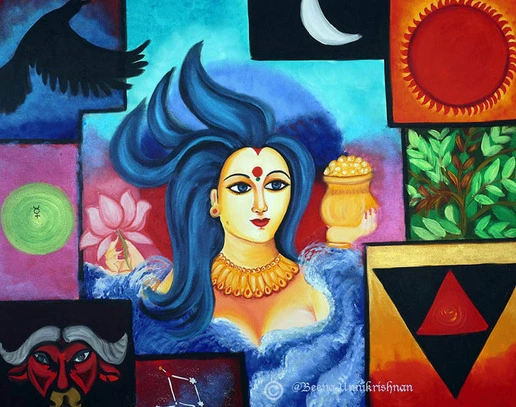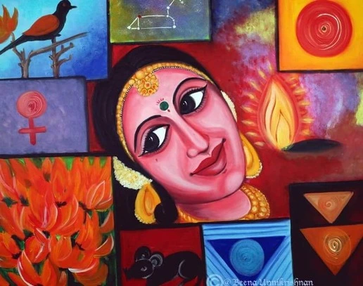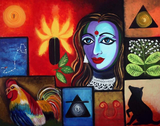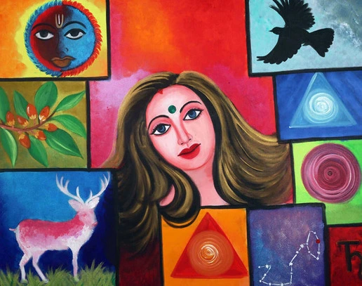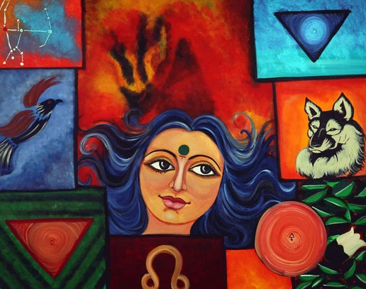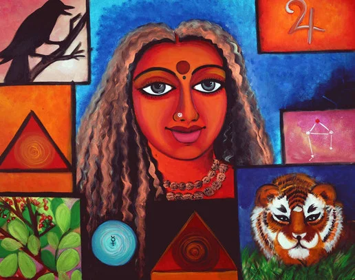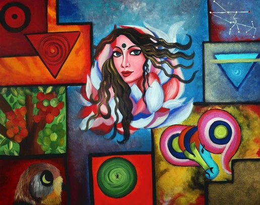 The series was sparked by my spiritual mentor. In my travels with him, there were many profound learnings, but we never discussed art. One fine morning, he asked me to paint the Nakshatras. I was at a loss for inspiration, unsure of the first stroke, and the canvas lay blank. The next day he initiated me with the Mantra of the first Nakshatra and asked me to begin painting.
